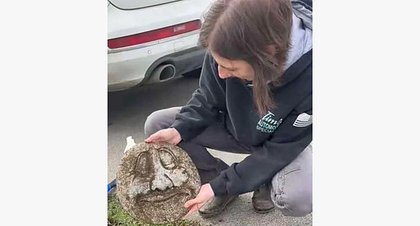 Женщина заметила в земле нос и выкопала каменное лицо